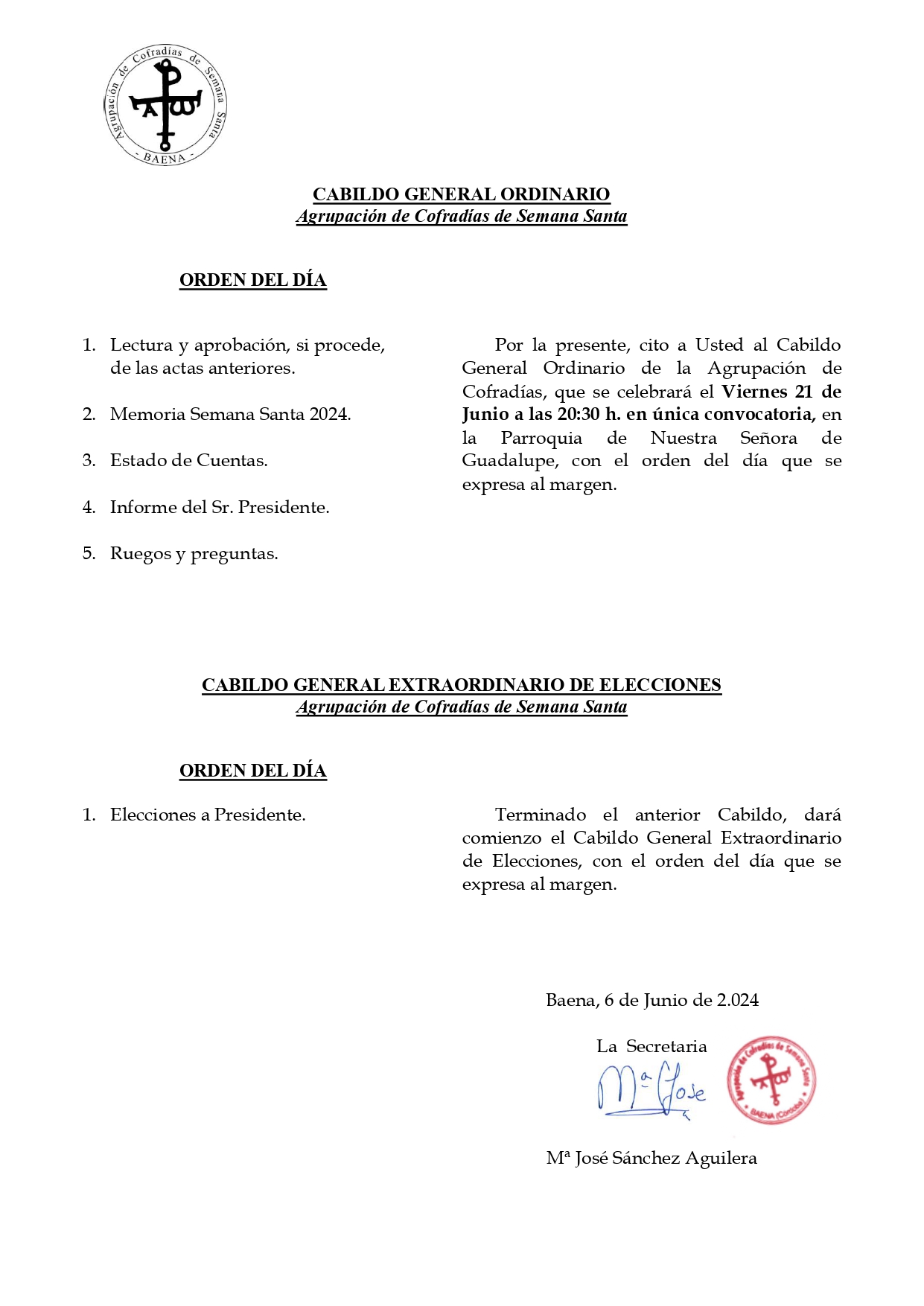 Cabildo General Ordinario Agrupación de Cofradías 21-06-2024